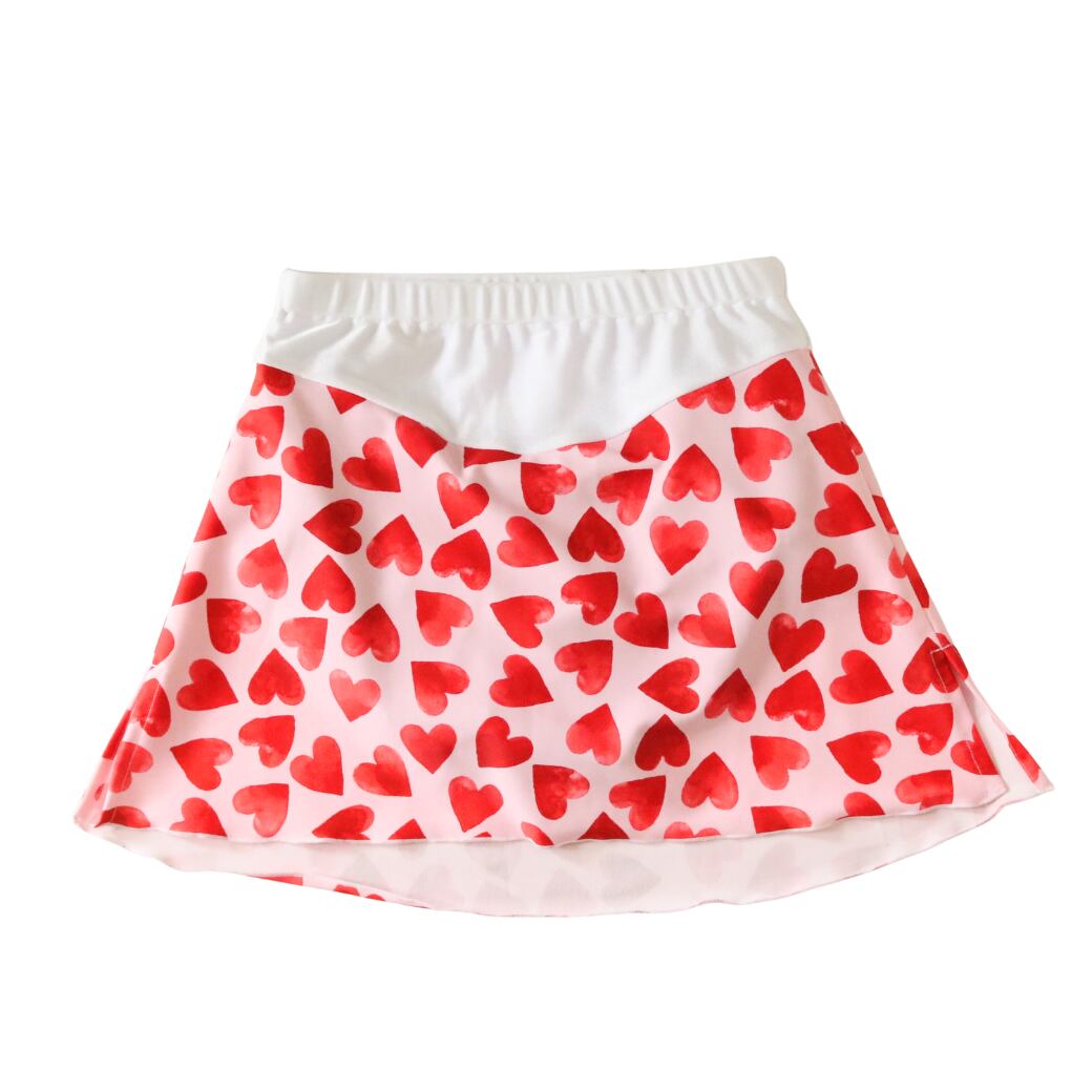 リンクをハートでいっぱいに。細見えシルエットフィギュアスケート練習用スカート 【ハートピンク】