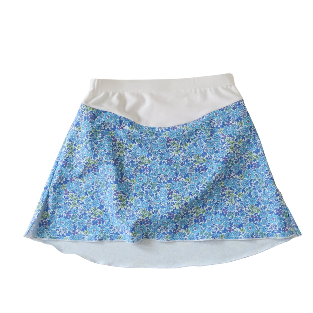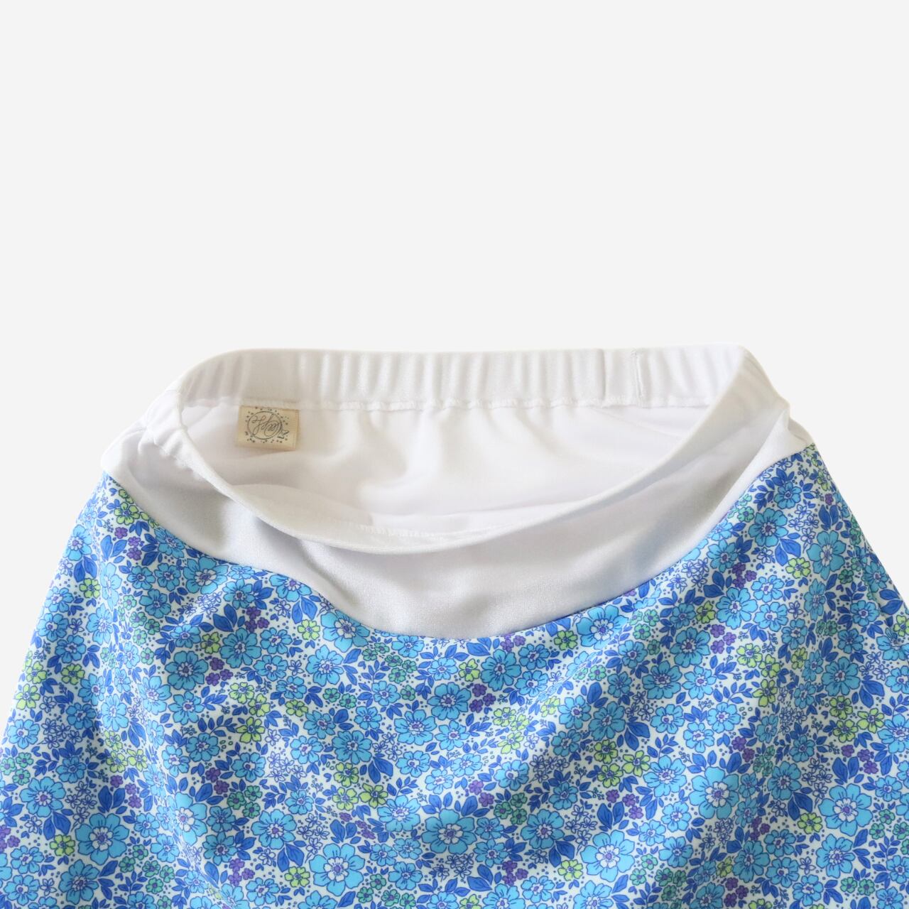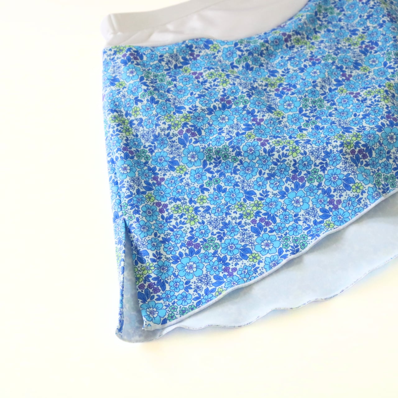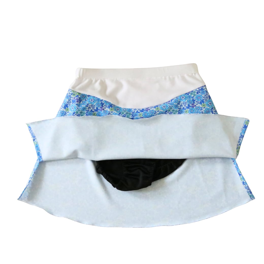 爽やかに決まる 細見えシルエット【白×水色小花】 フィギュアスケート専用スカート
