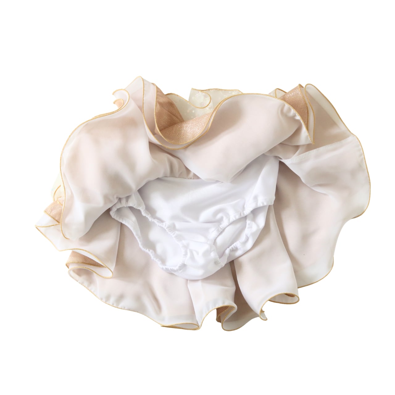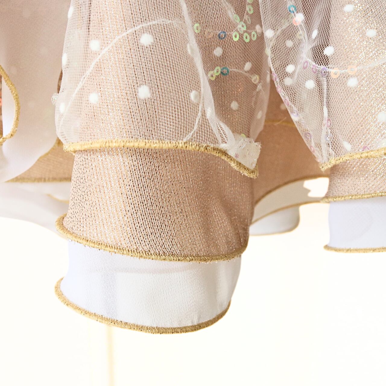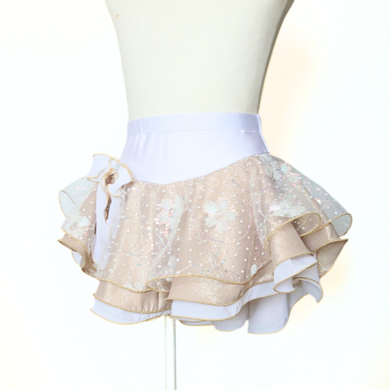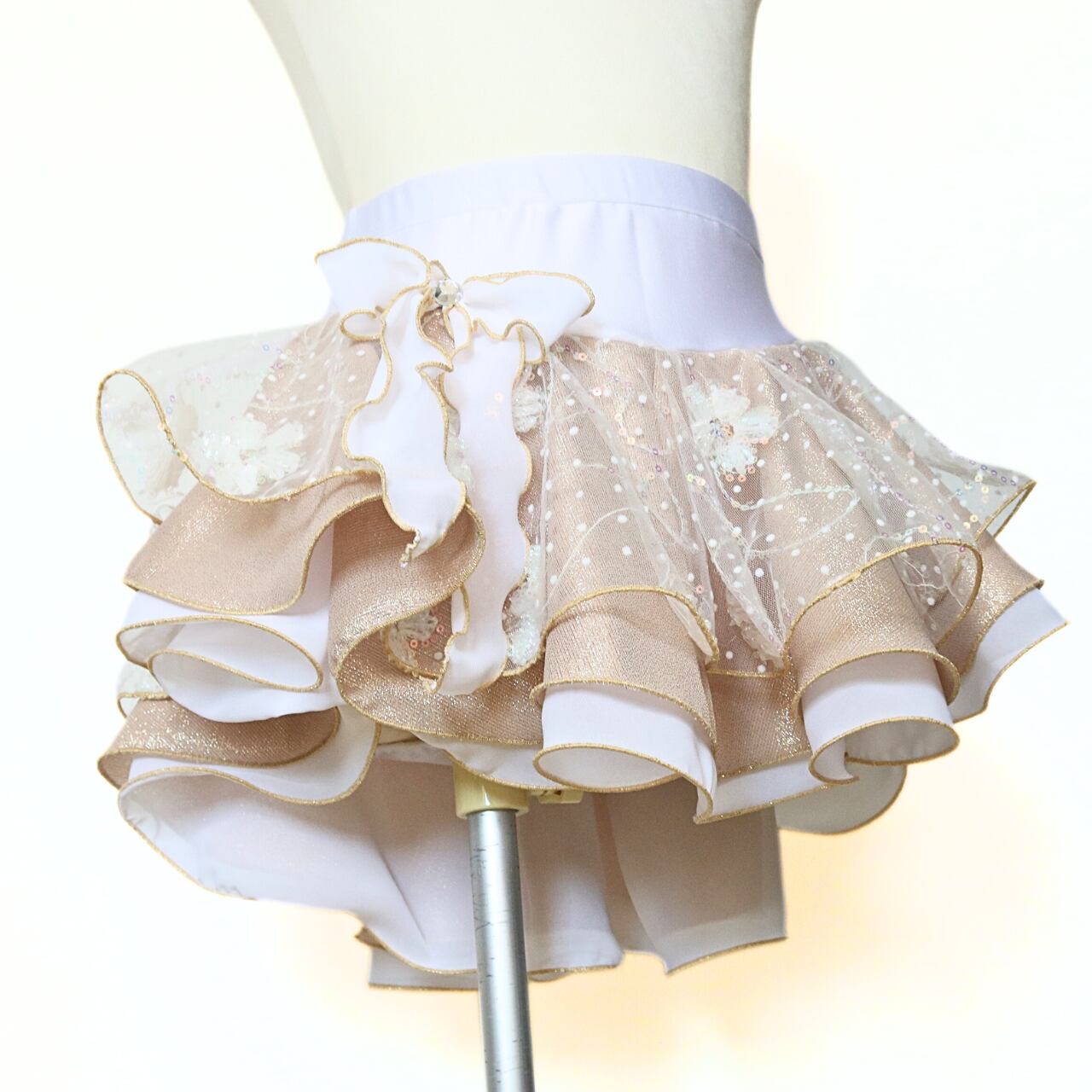 ・上品で華やかなゴールドを基調にした3段のゴージャススカート。