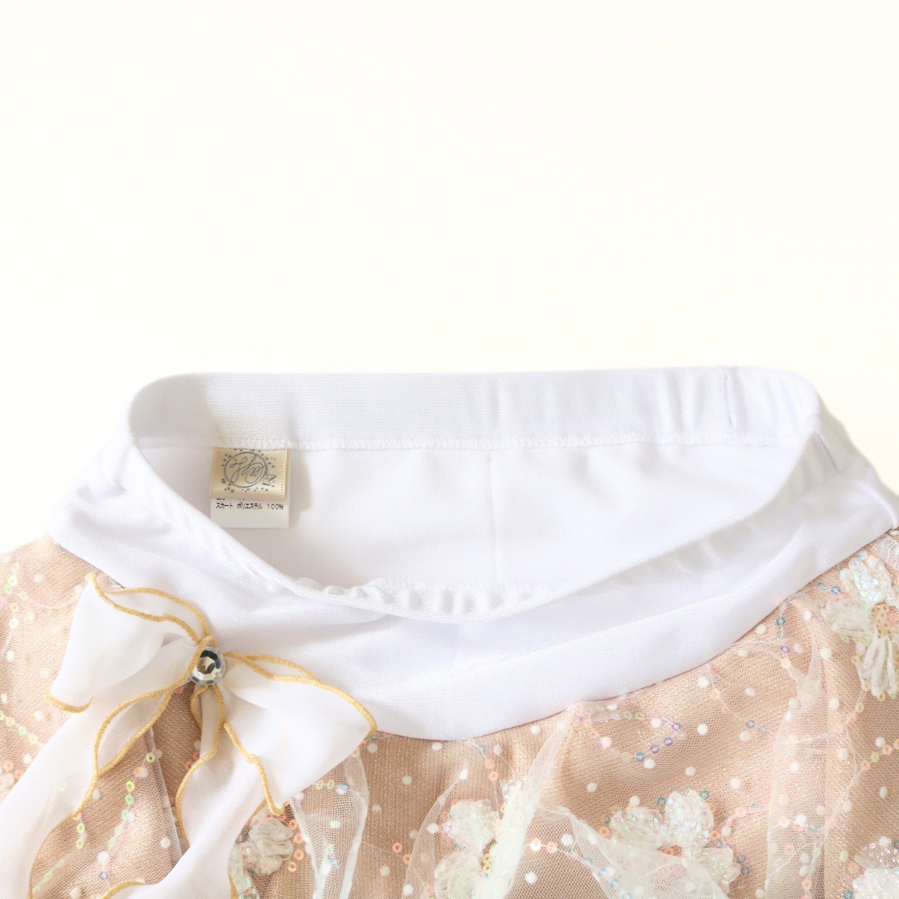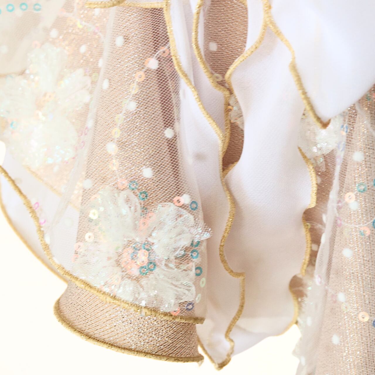 ・小さなスパンコール付きのフラワーチュールが、リンクの照明でキラキラと輝きます。