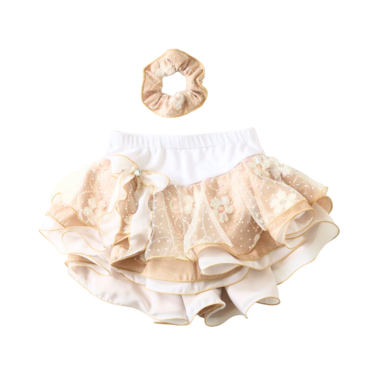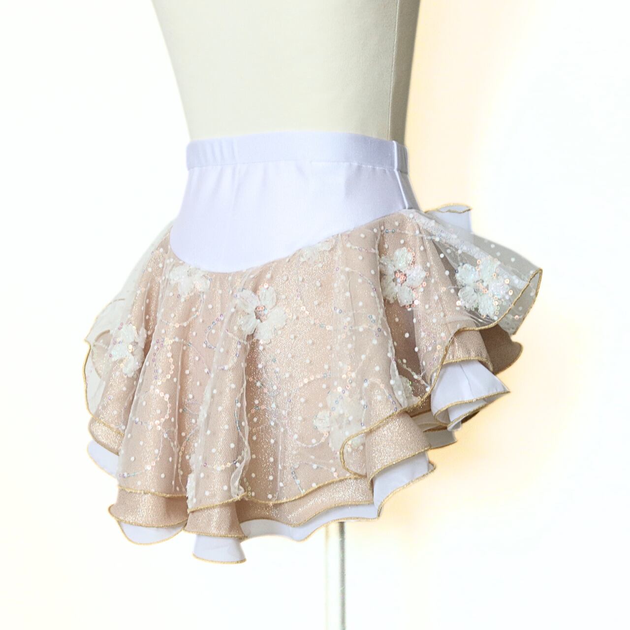 オリンピックシーズン特別モデル 2025年クリスマス限定カラー ゴールド フラワーチュールフィギュスケート練習用2円3段スカート
