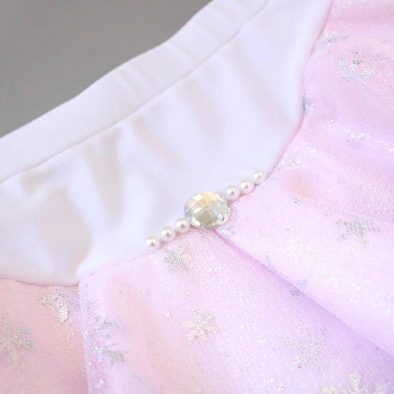 オーロラ糸がリンクに輝く! 雪の結晶パステルピンクフィギュアスケート2円3段スカート
