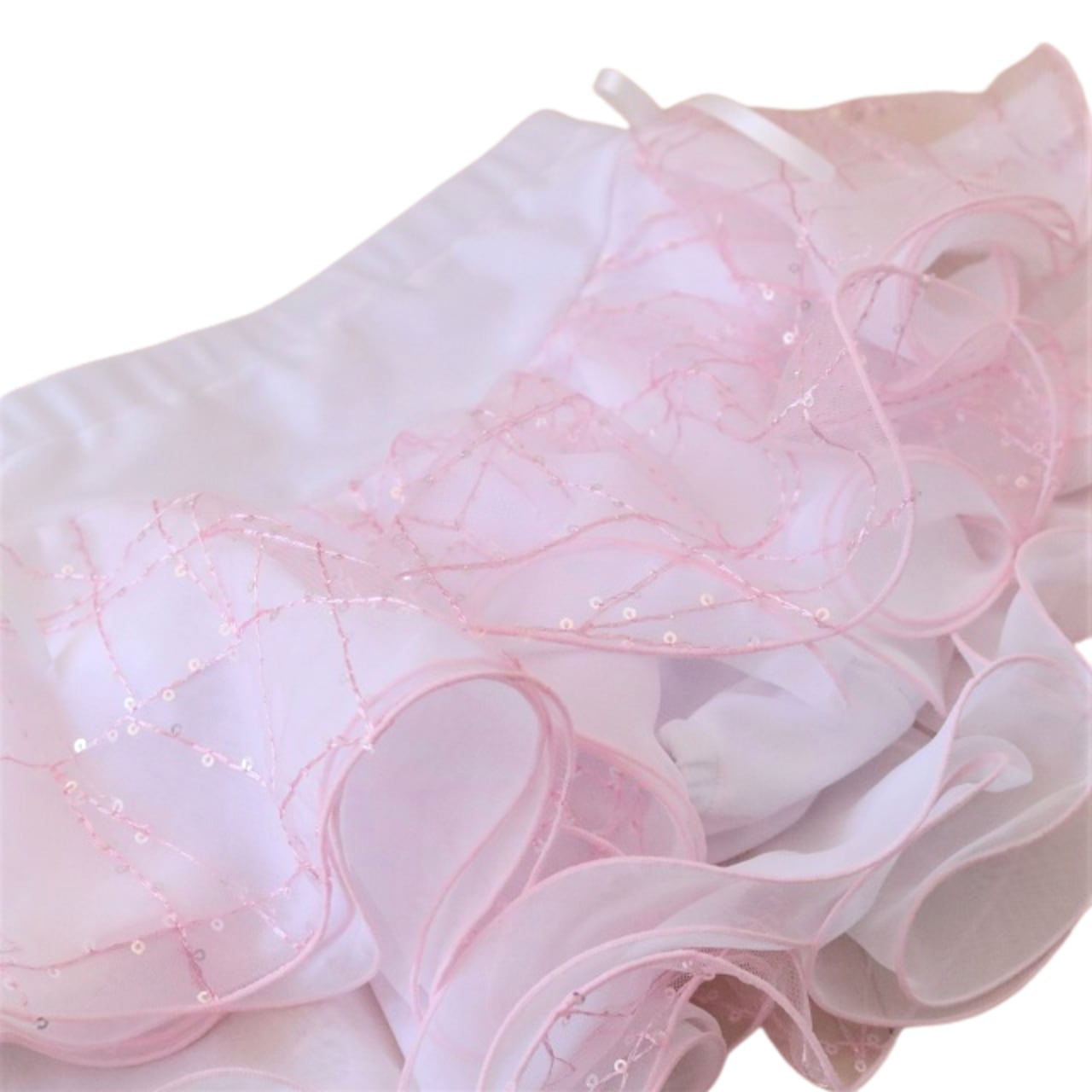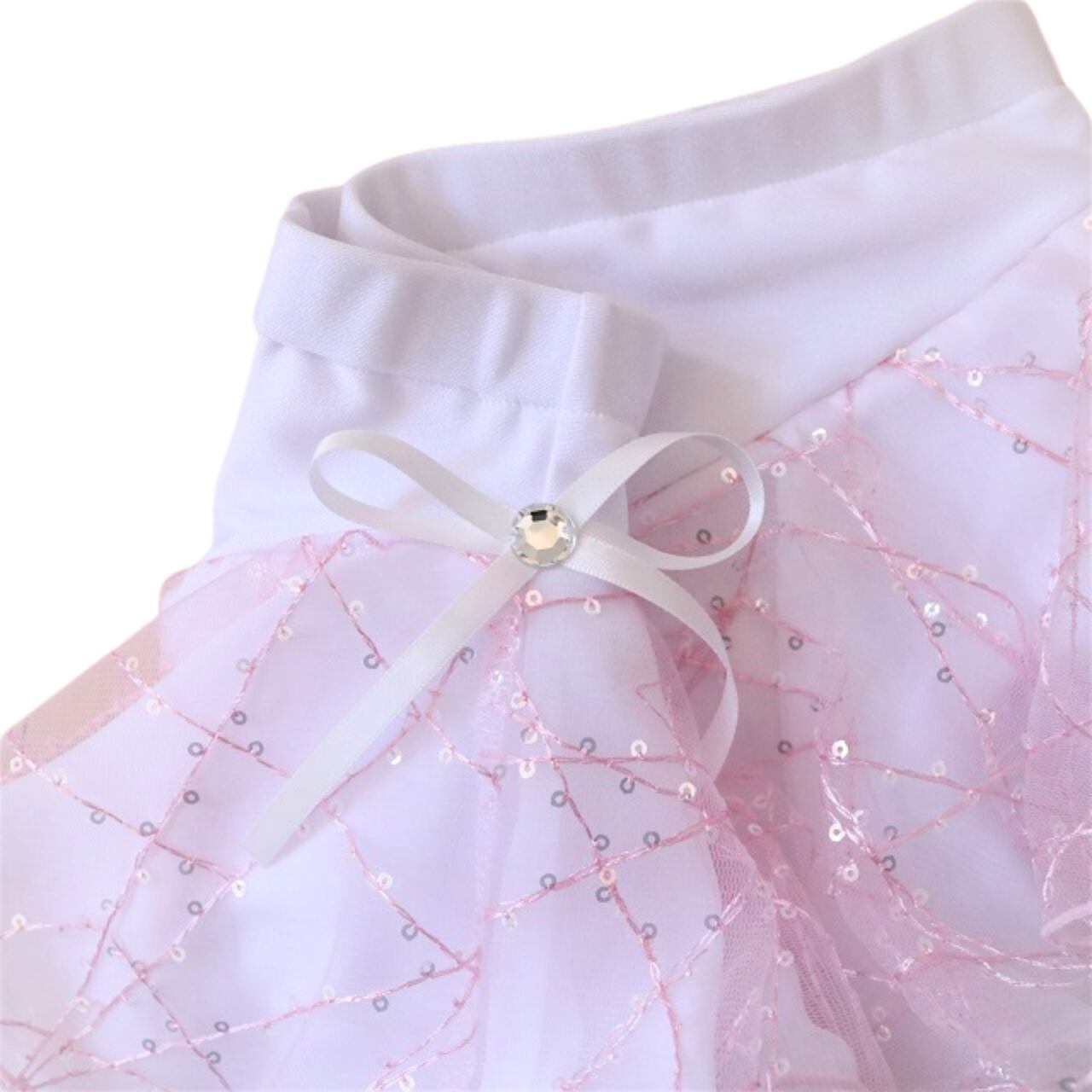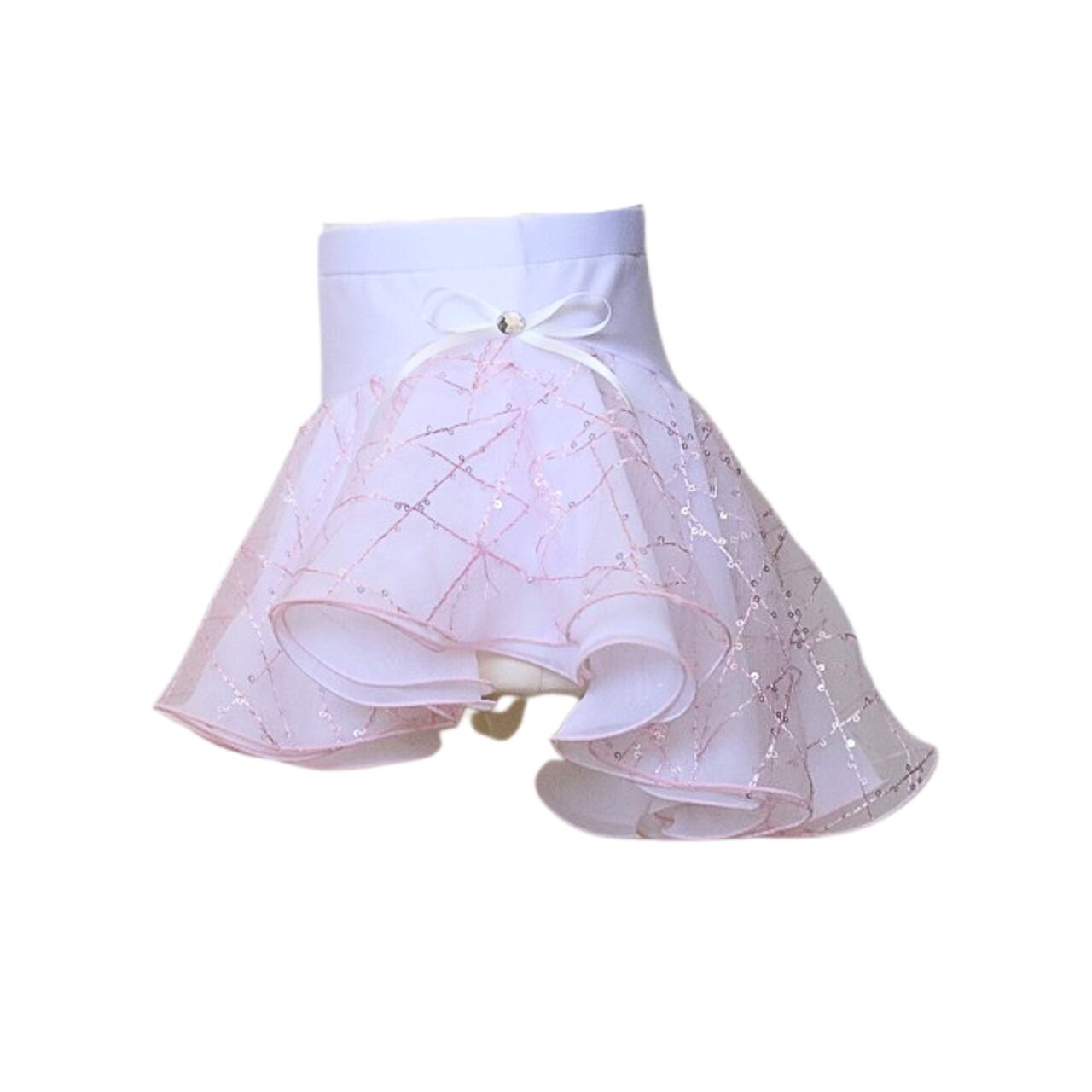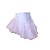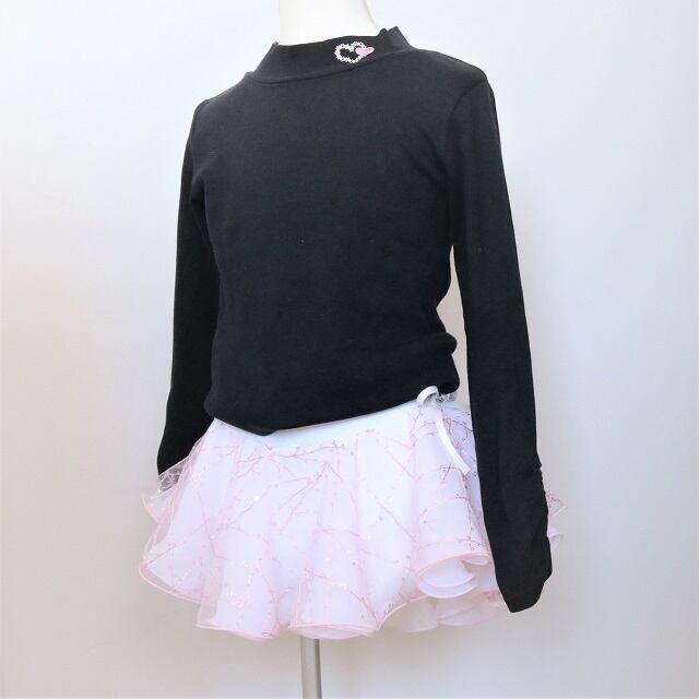 淡~いピンクに真っ白の柔らかジョーゼットを2段重ねた、見た目もふんわりな3段スカートです。 75デニールジョーゼットと薄いチュールのスカートなので、とっても軽くスケーティングのたびに、フワフワ揺れてとっても可愛いです。